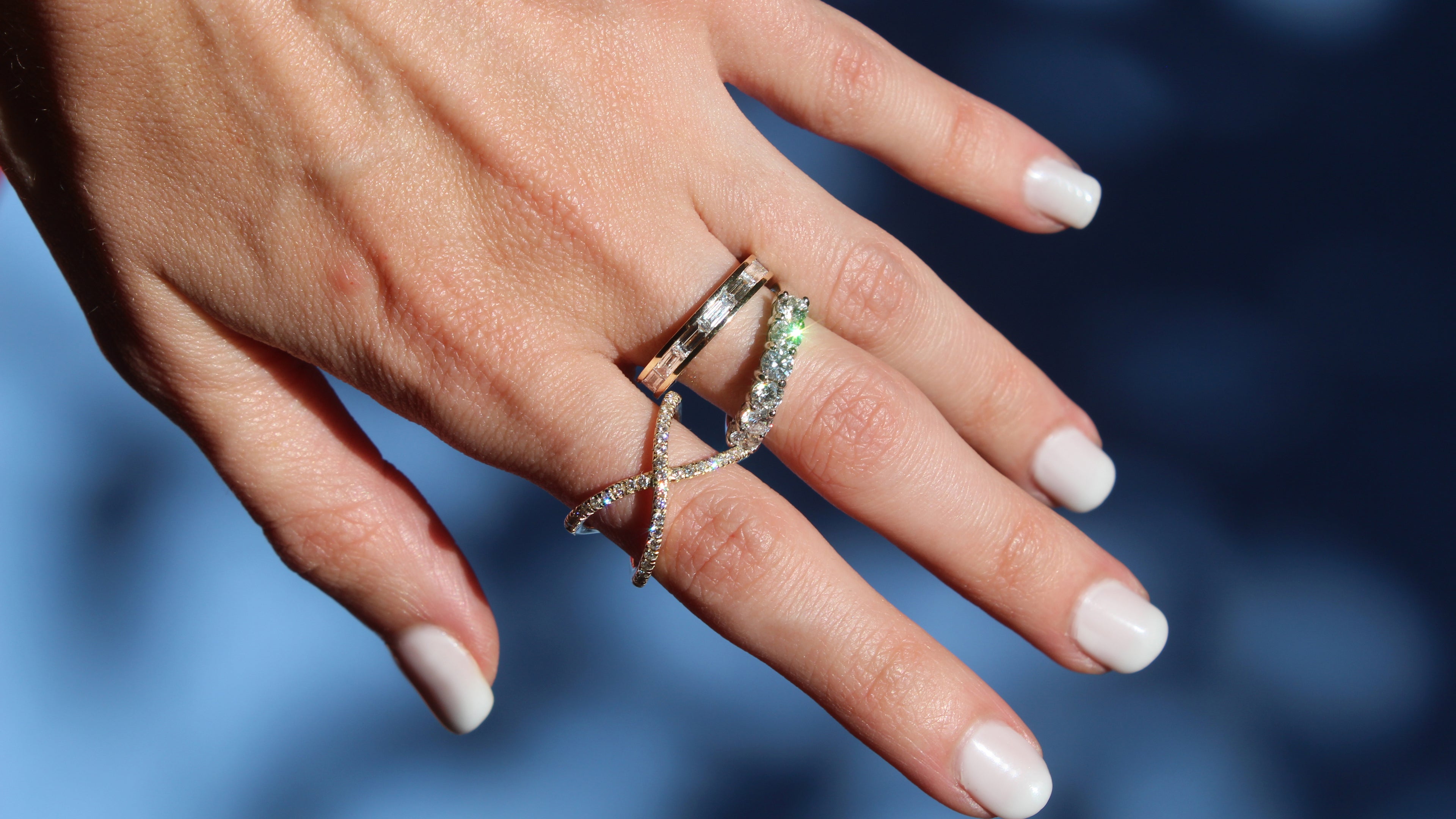 Anillos personalizados con piedra seleccionada y montura a medida; pensados para la comodidad y la permanencia, recuerdo tangible de un “sí” para toda la vida.