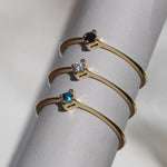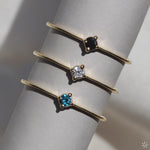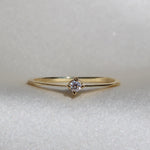 Anillo de oro de 14k con 1 diamante pequeño en solitario. Por el tamaño del diamante, esta se vuelve una pieza ideal para el diario, y combinable con otras piezas de joyería.