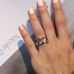 - 7 piedras en total: 4 piedras de color + 3 diamantes.