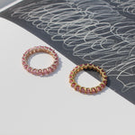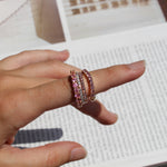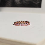 Pieza en stock: Zafiro Rosa, talla 7, Oro amarillo 14k. Esta pieza no puede ajustarse en talla.