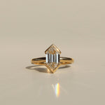 Anillo solitario con diamante central, corte hexagonal, en oro: