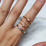 Churumbela en oro blanco u amarillo de 14k con piedras de nacimiento. Cada una de las piedras que elijas para tu anillo representa a una persona o fecha simbólica importante para ti.